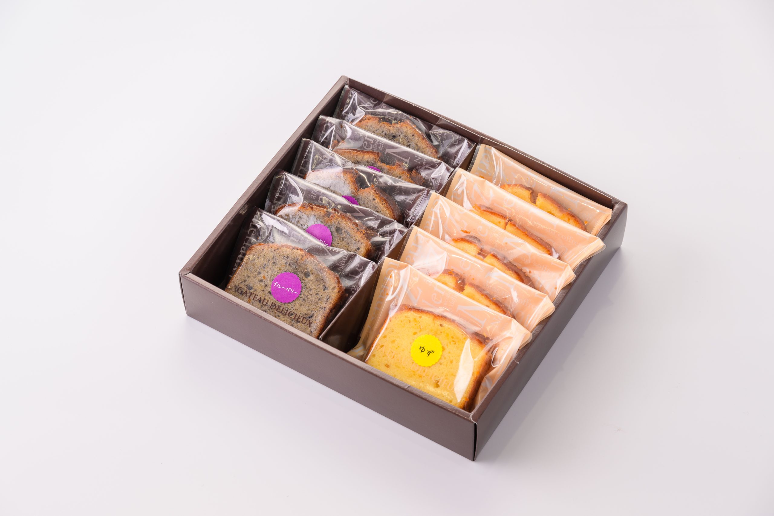 下松市の特産品を使用した「焼きケーキ」シリーズです。シーズンにより種類は変わりますが、「栗五郎のかぼちゃ」「米川ゆず」「来巻ブルーベリー」「笠戸島レモン」の4種類があります。