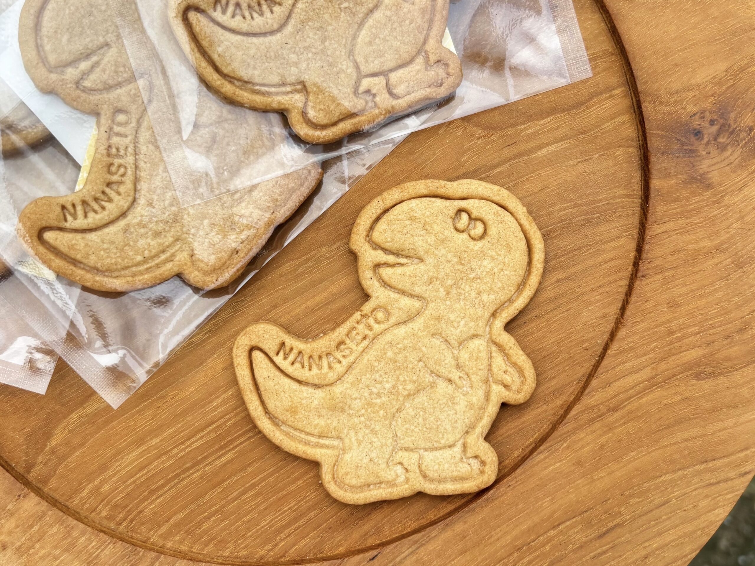笠戸島にあるティラノサウルスのオブジェをモチーフにした、サクサク食感のスパイスクッキーです。