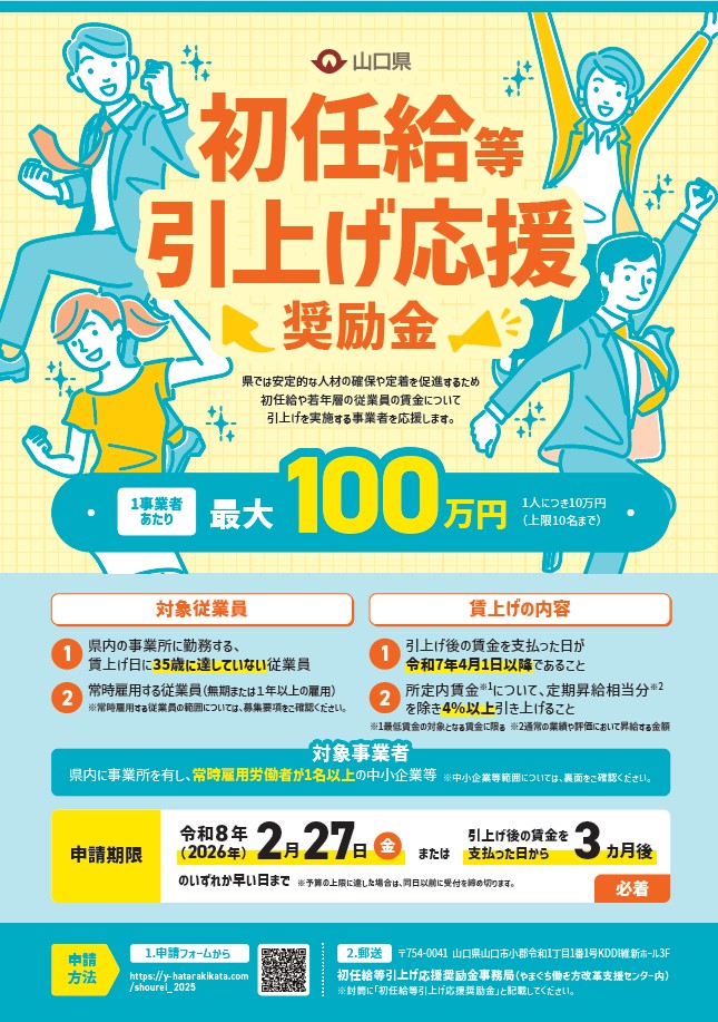 『初任給等引上げ応援奨励金』のお知らせ【山口県】