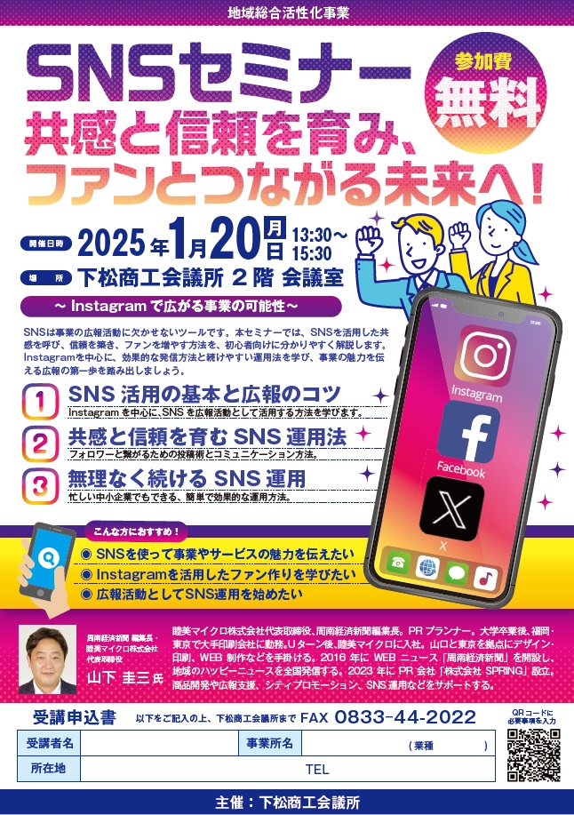本セミナーでは、SNSを活用した共感を呼び、信頼を築き、ファンを増やす方法を、初心者の方に分かりやすく解説いただきます。
