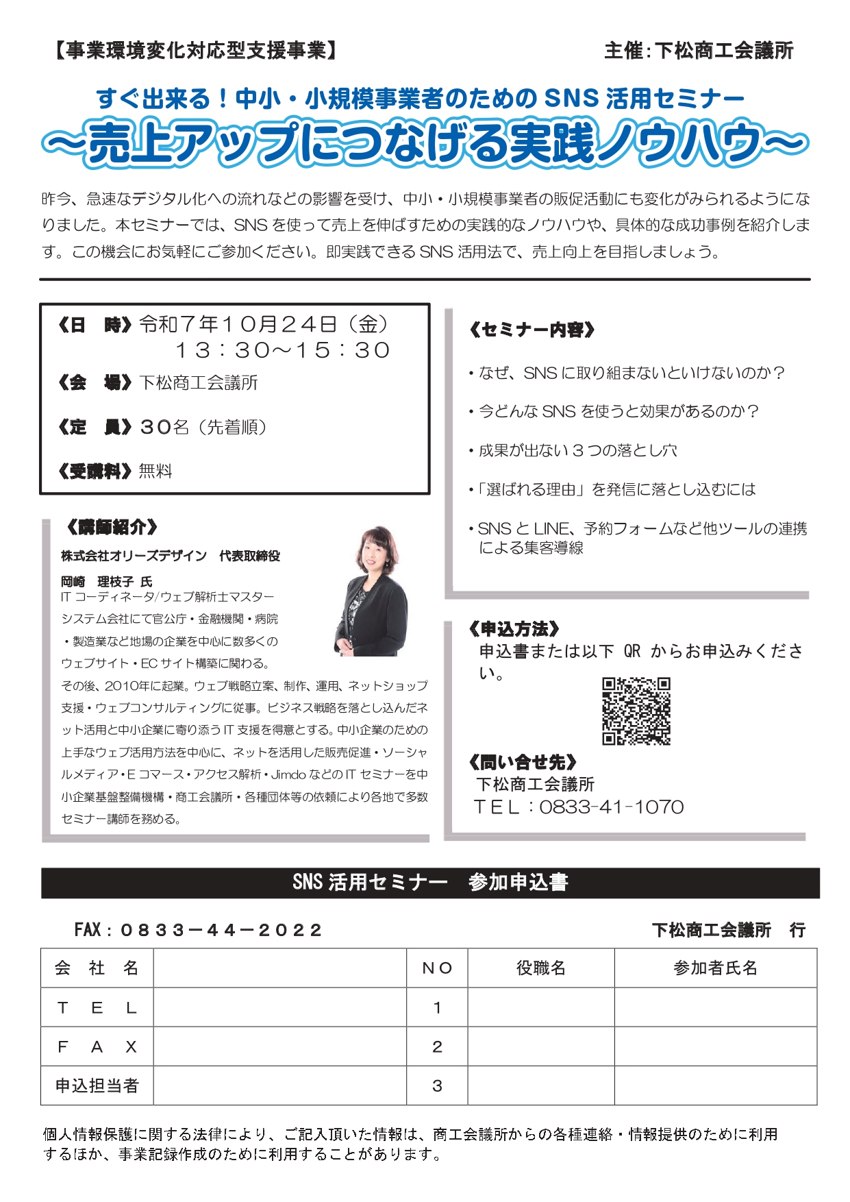 3. 『中小・小規模事業者のためのSNS活用セミナー』開催のお知らせ