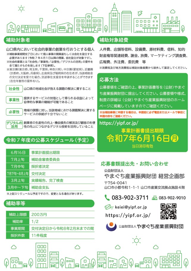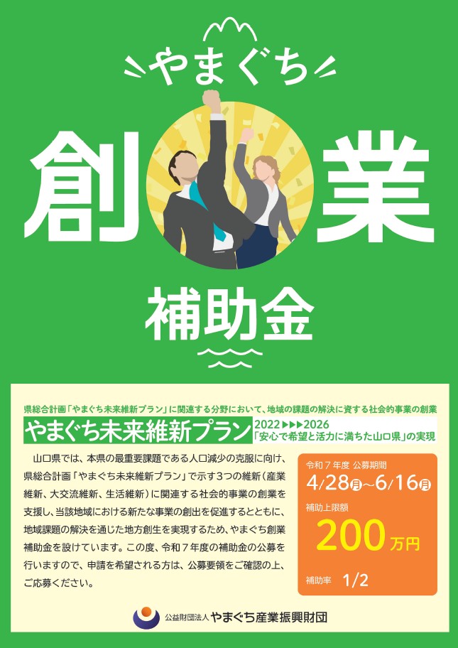 令和7年4月28日より『令和7年度やまぐち創業補助金』の募集が開始されました。